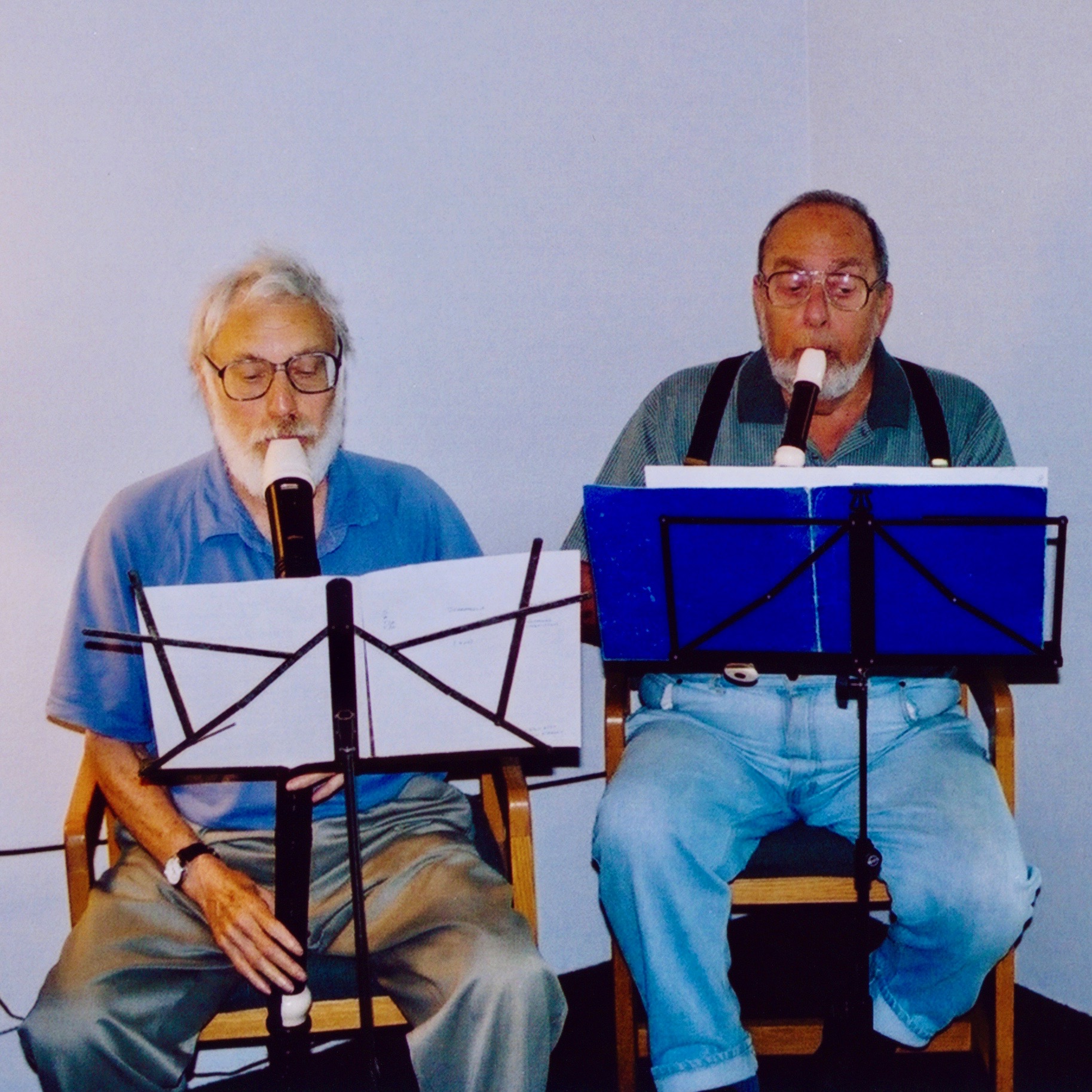 | Marshall and Bert getting medieval with their recorders. Check out those same two flanking me and my mom fifty years earlier |