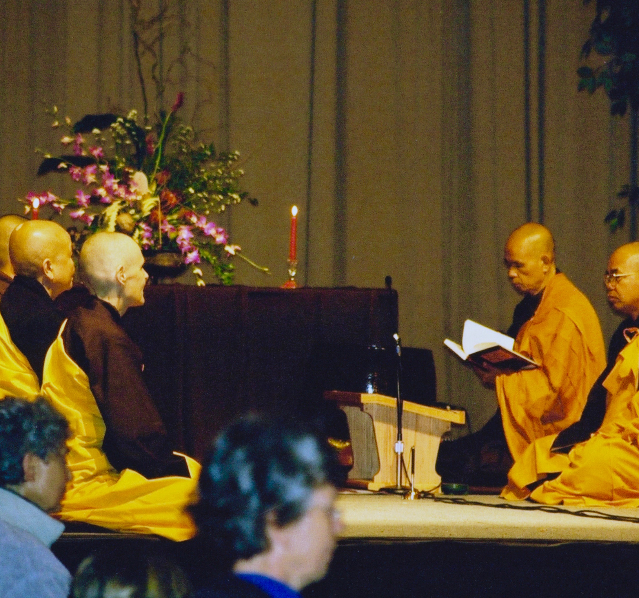 | Vietnamese Zen monk and my teacher Thich Nhat Hanh performing the ceremony in which I and several others that year were ordained as lay practitioners in his monastic order. August 30, 2002 |