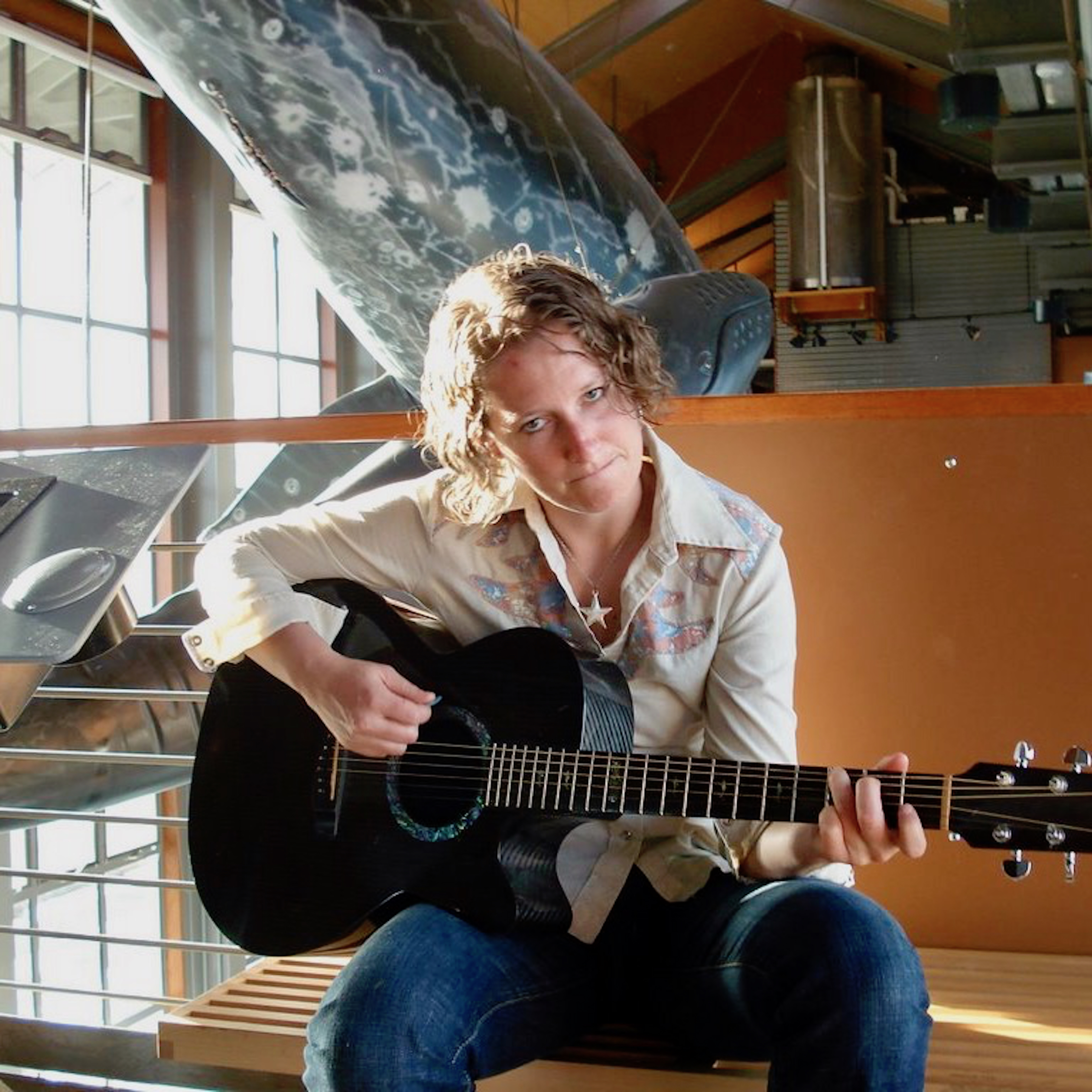 | Annie Hjelstrom moved to Santa Barbara after a Peace Corps stint in Vanuatu and stayed with her brother Eric, who at the time was iving at El Capitan as Park Ranger; much more about him and family later. Annie took up surfing along with the Salties and Brinies pictured atop this page. She got good, and we became surf buds and weekly post-surf dinner companions at Super Cucas in Isla Vista. She met and moved in with Beth Kirby during that period. After some months of togetherness and deliberation they took me out to a mystery dinner at the now-defunct and much-missed Sojourner Cafe, where they asked me to help them make a family. I tearfully and gratefully embraced the project, since in all the marriages and relationships documented here, babies never happened. That was my life's one regret, not being a father; several were conceived, but all went unborn for various reasons, all sad. However, with Annie and Beth: success! The Kirby family flourished, and you can see the results from 2013 on, in this document. Here is Annie, pre-marriage and pre-babies, playing my carbon fiber Rainsong guitar at Ben and Corinne's wedding reception at SB Sea Center, March 29, 2008 |