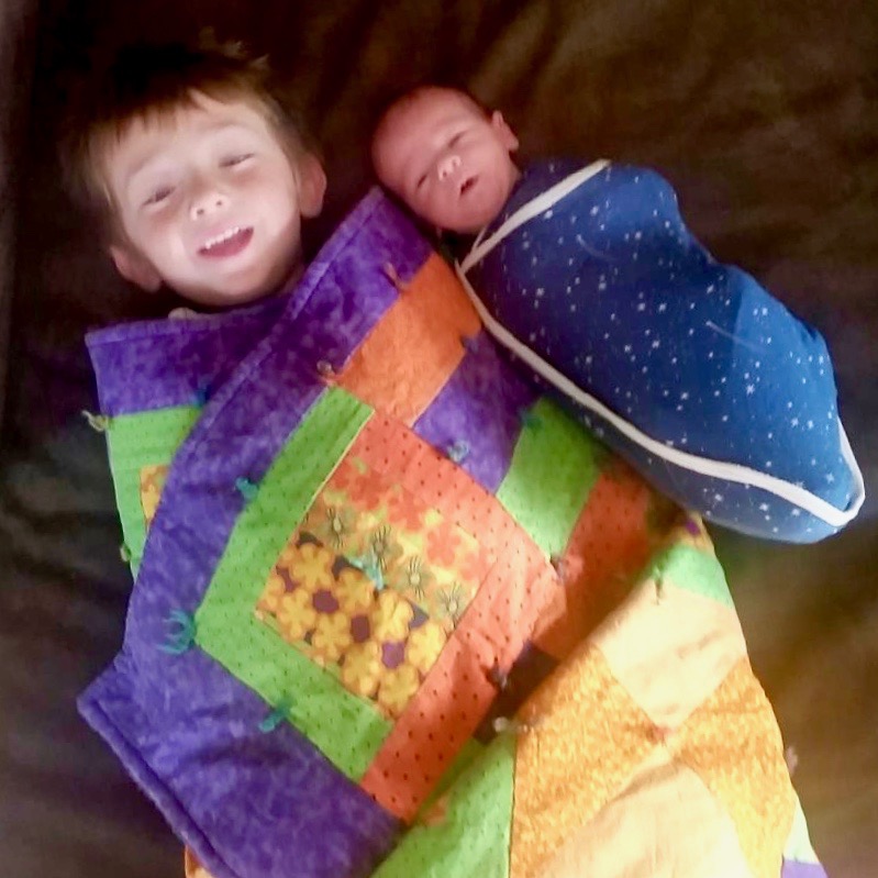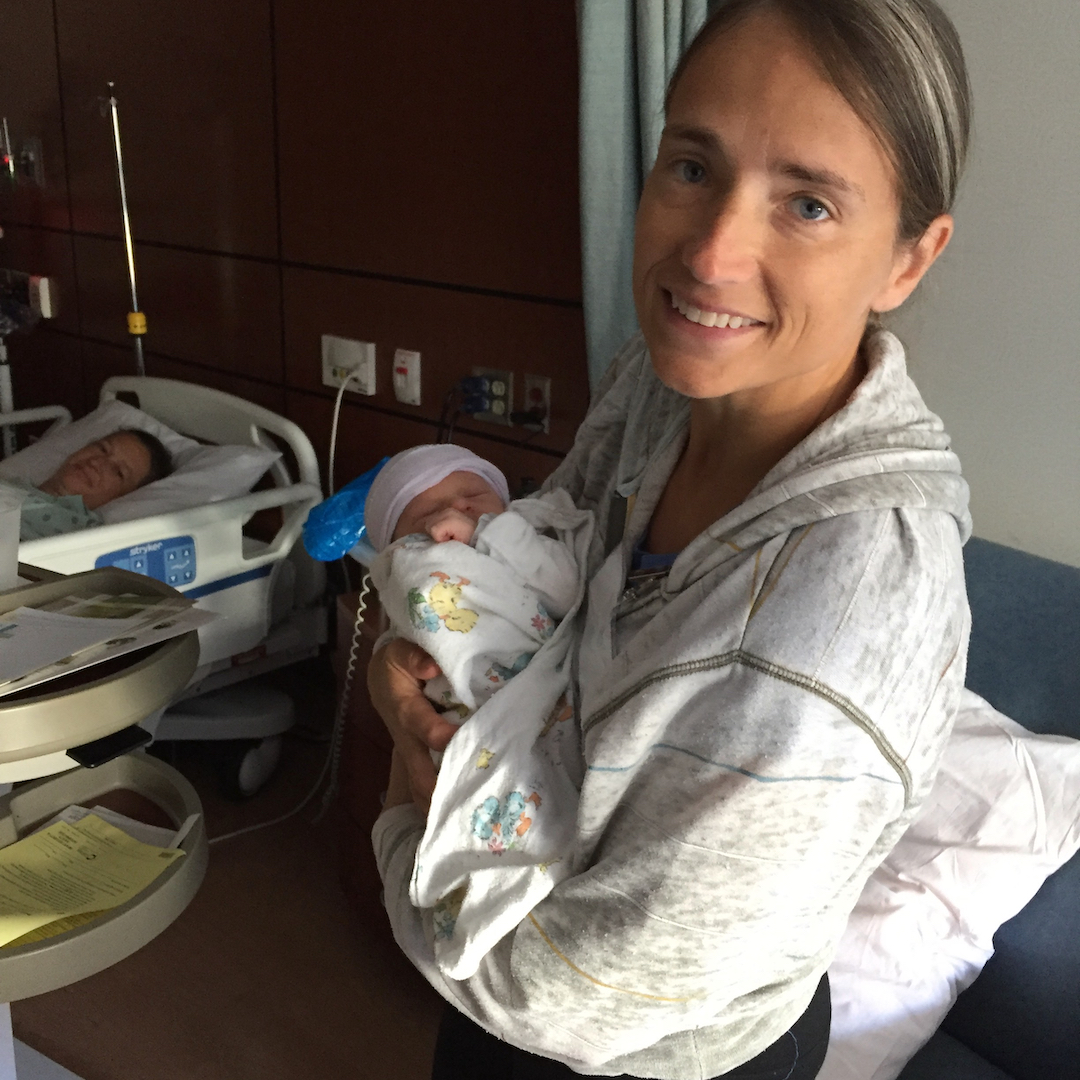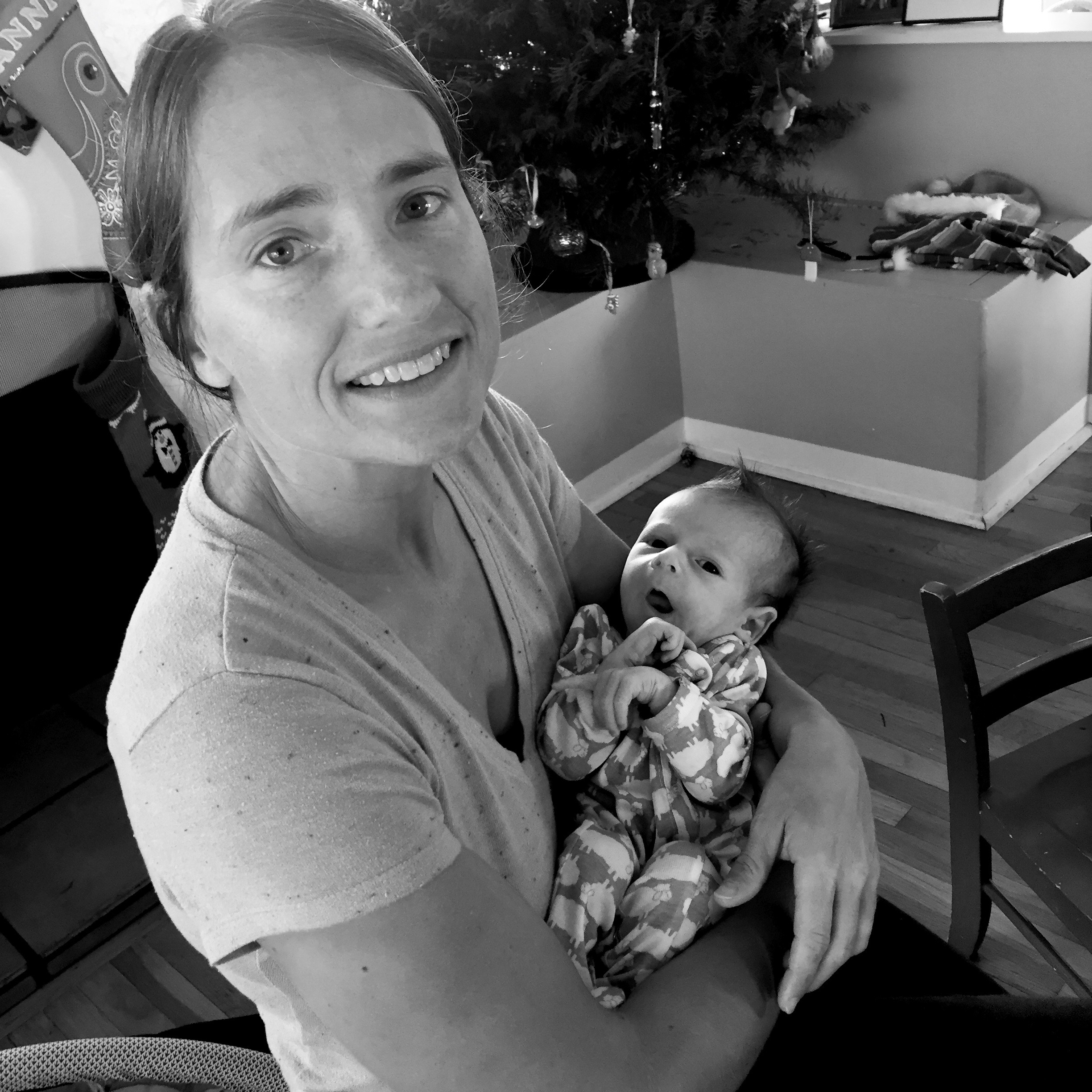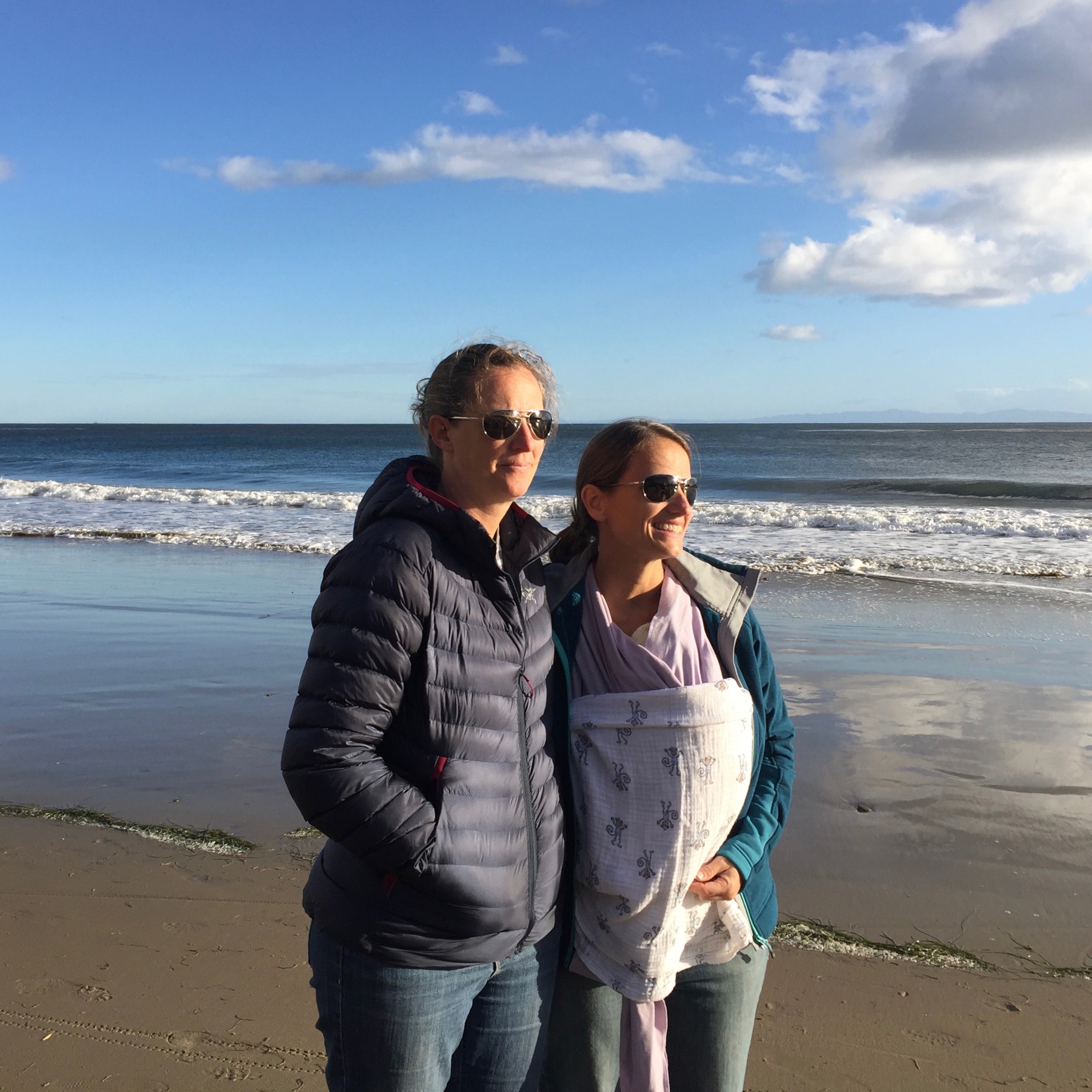 | Annie and Beth on a blustery Christmas Eve day, 2016. There's a new little baby boy under that blanket! |