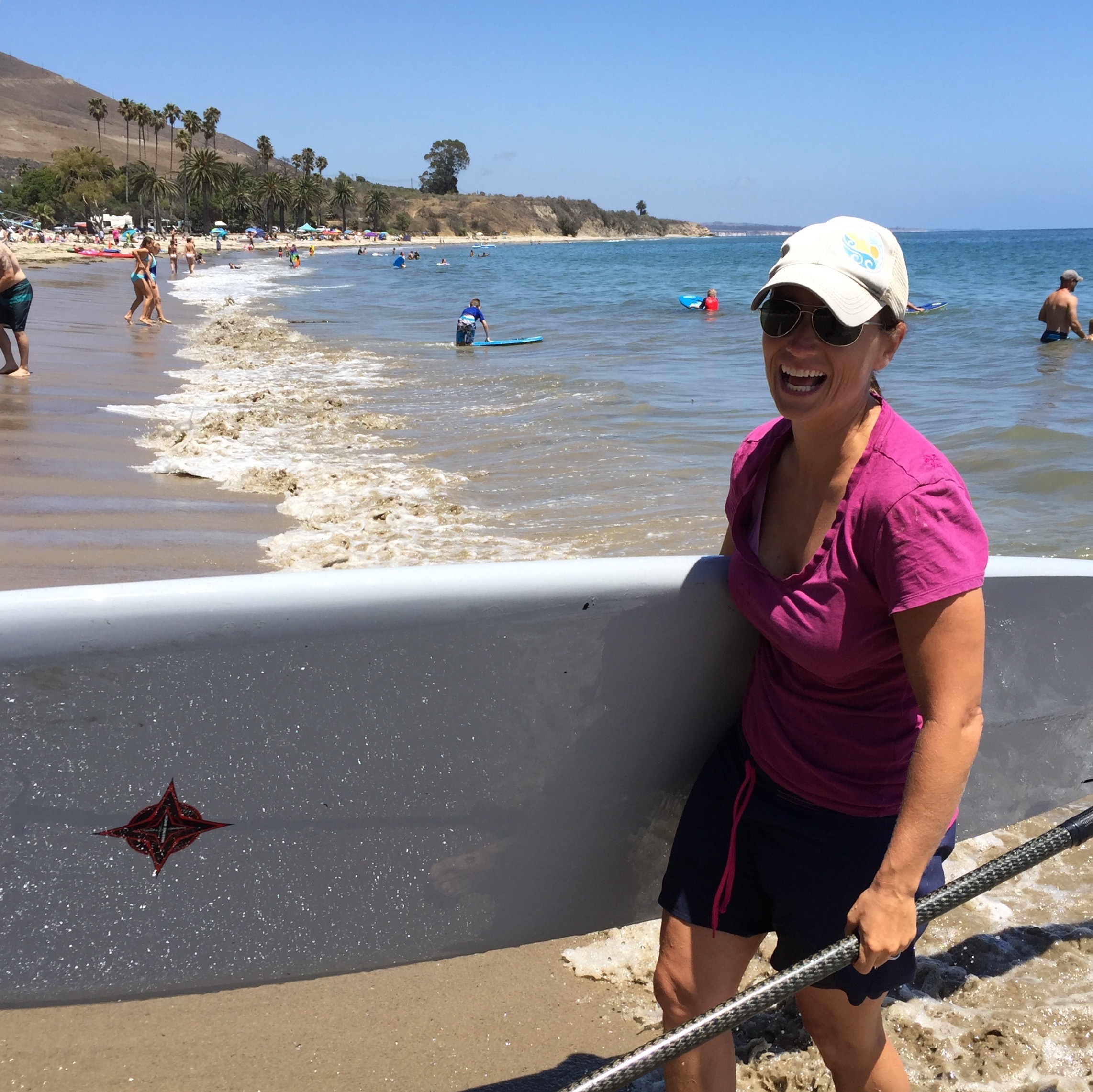 Beth comes in from a SUP session, Refugio, July 2016