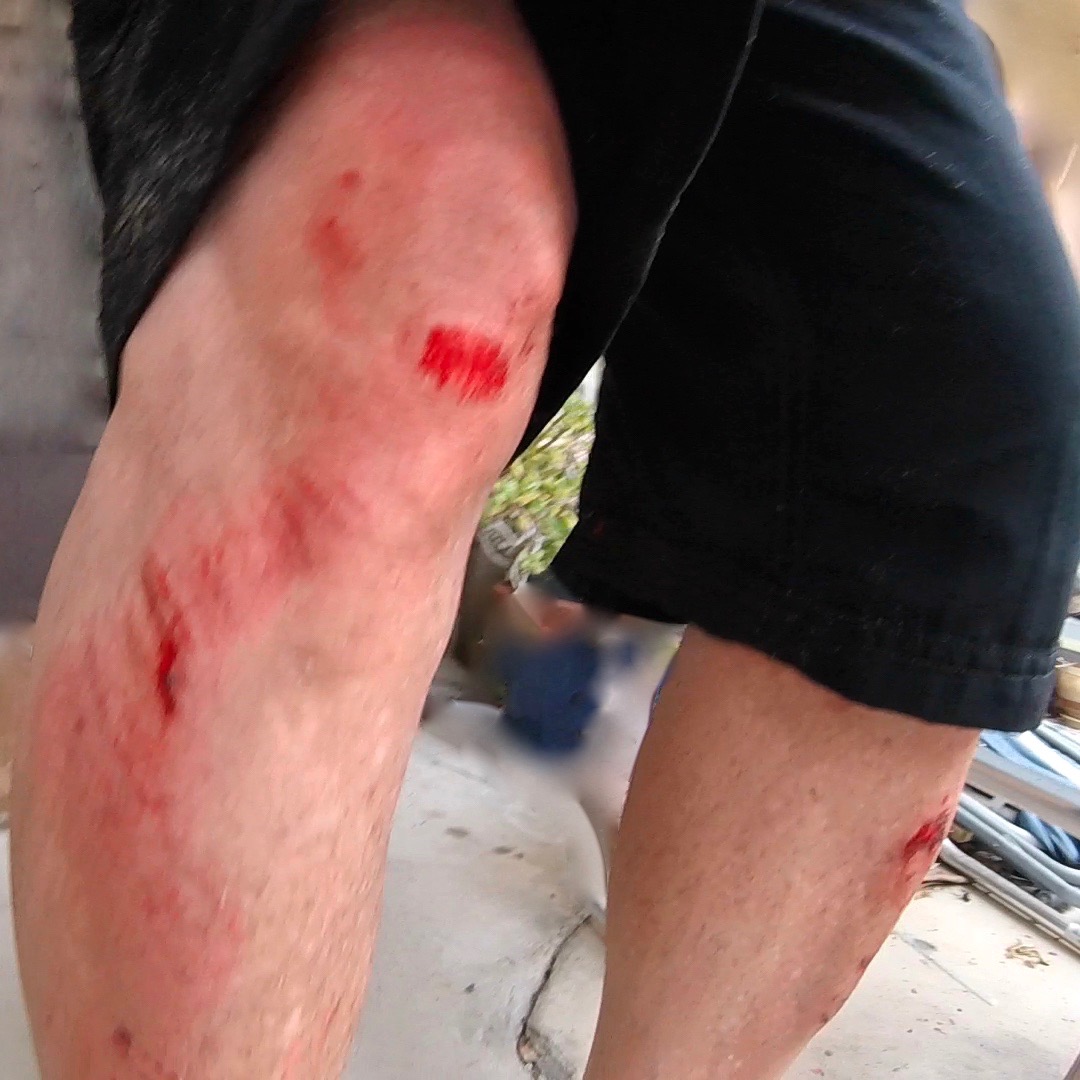 tumbles on another hard sidewalk,