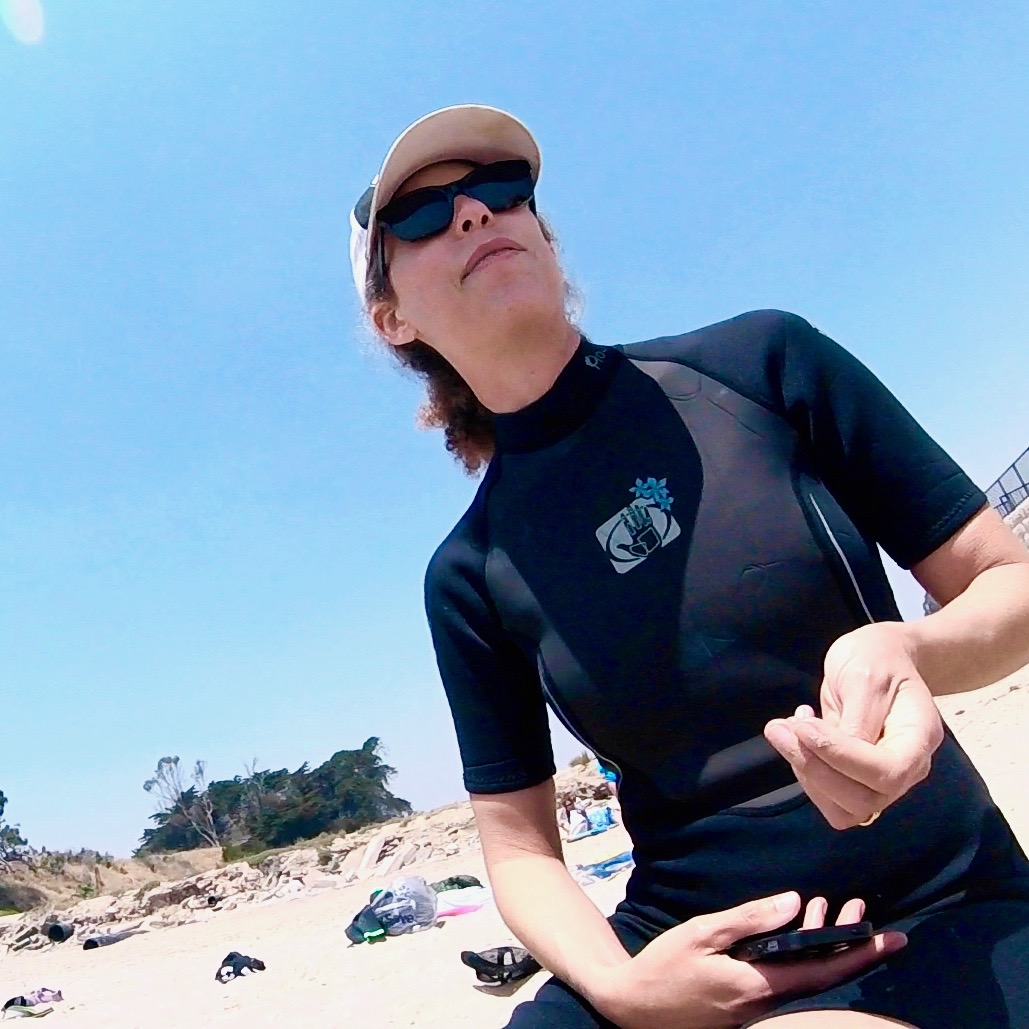 | Our friend and surf bud Nancy Gnagy, Refugio, December 2016 |
