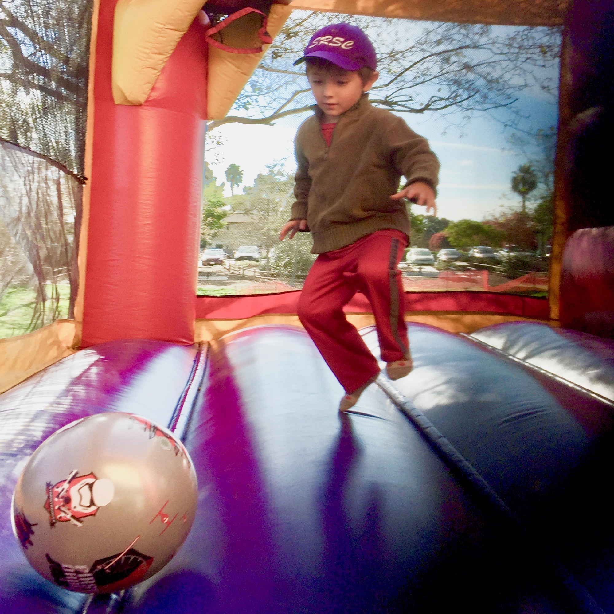 In the bouncyhouse, Girsh Park, Goleta, December 2016