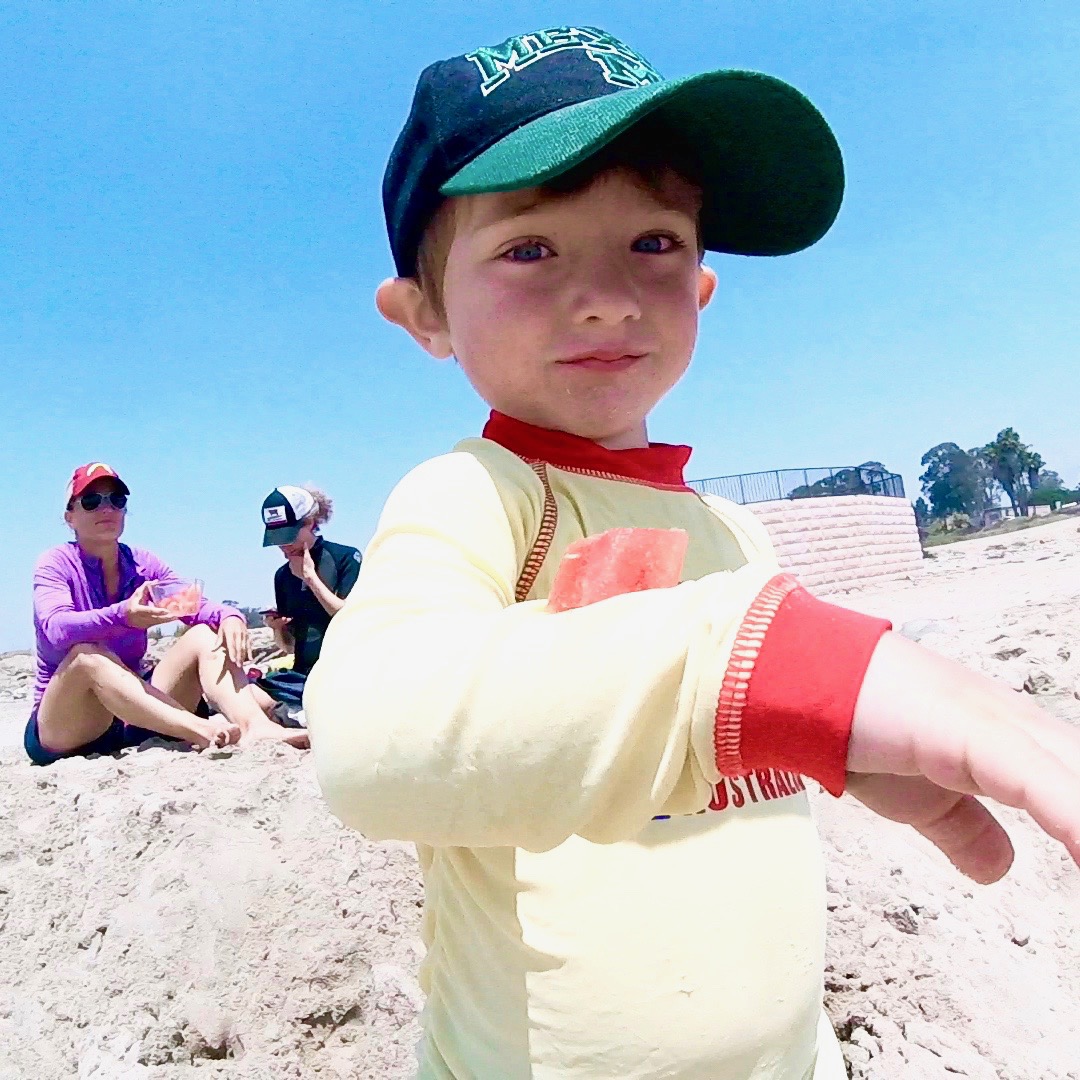 June, 2016 videos: 1. Soren checking out the Refugio shorebreak w/Hjelstrom family: