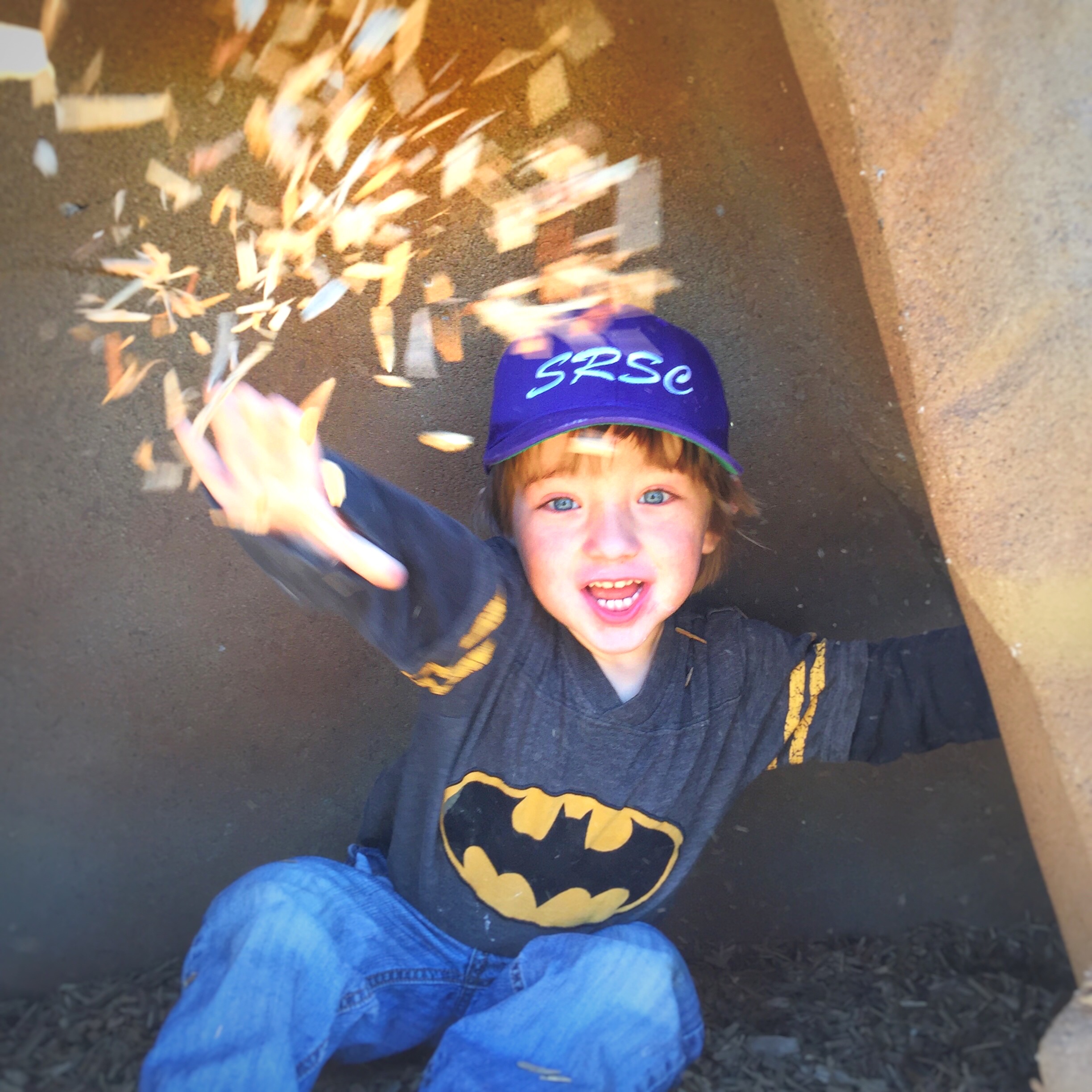 Flinging a handful of wood chips, Girsh Park, Goleta