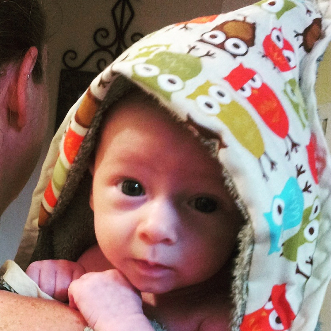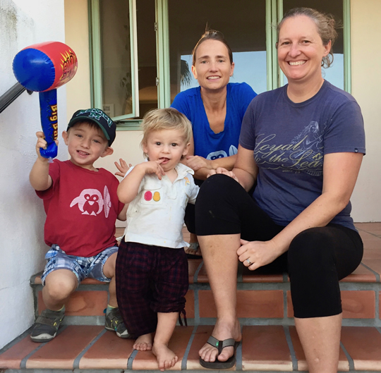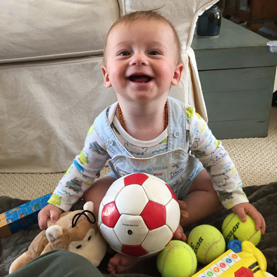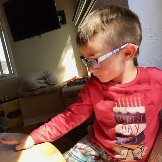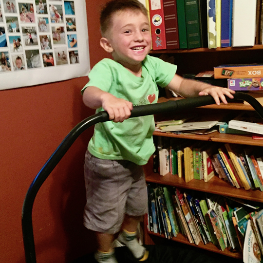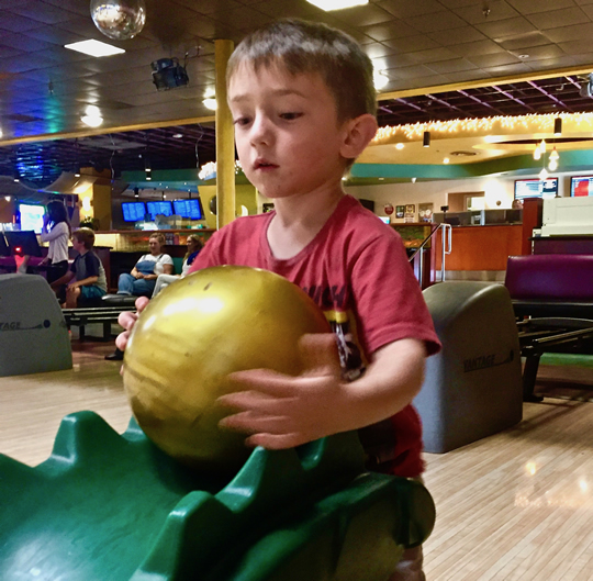 | Same day as above: Soren won the blow-up hammer playing arcade games at the bowling alley |
