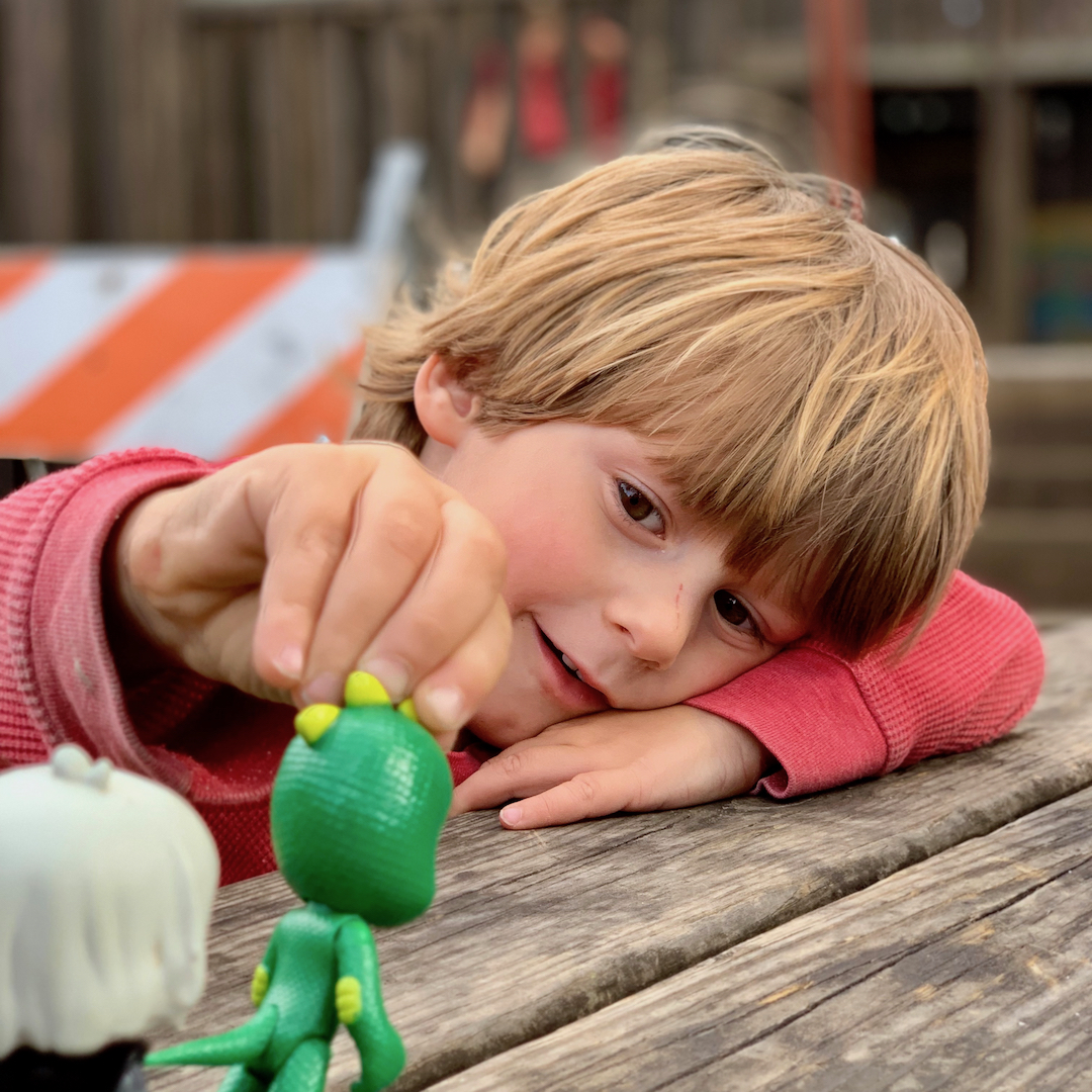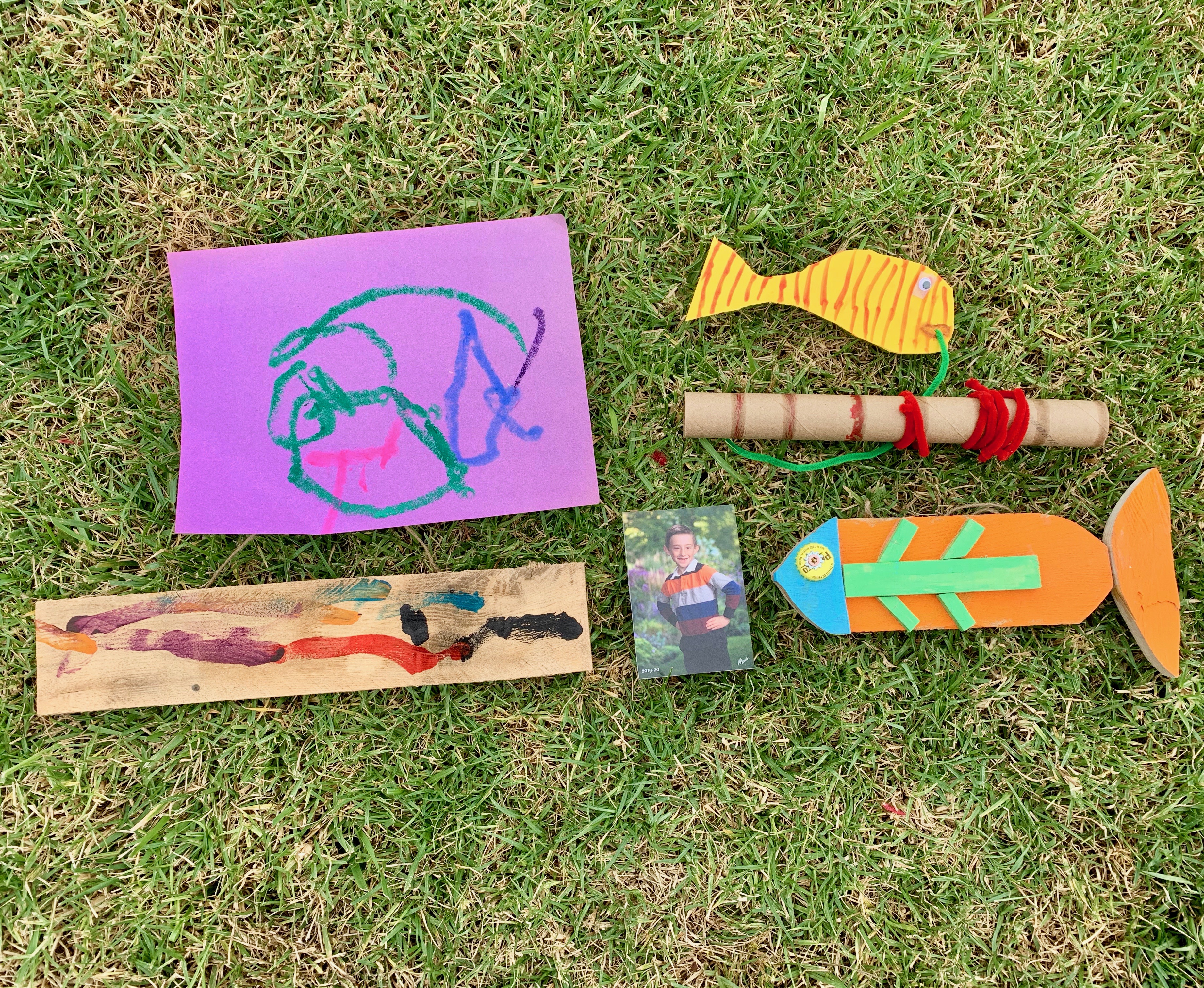 | June: we arranged to set up a Father's Day meet in Berkeley park near my house. It's the first time I've been in physical proximity with the moms and kids since quarantine started ... what a delight. We all wore masks for a while, except for Evett, who is staunchly anti-mask, and gradually they came off. I got some books from Amazon for the boys, and they made me some really cool stuff, pictured below along with some pix from that day |