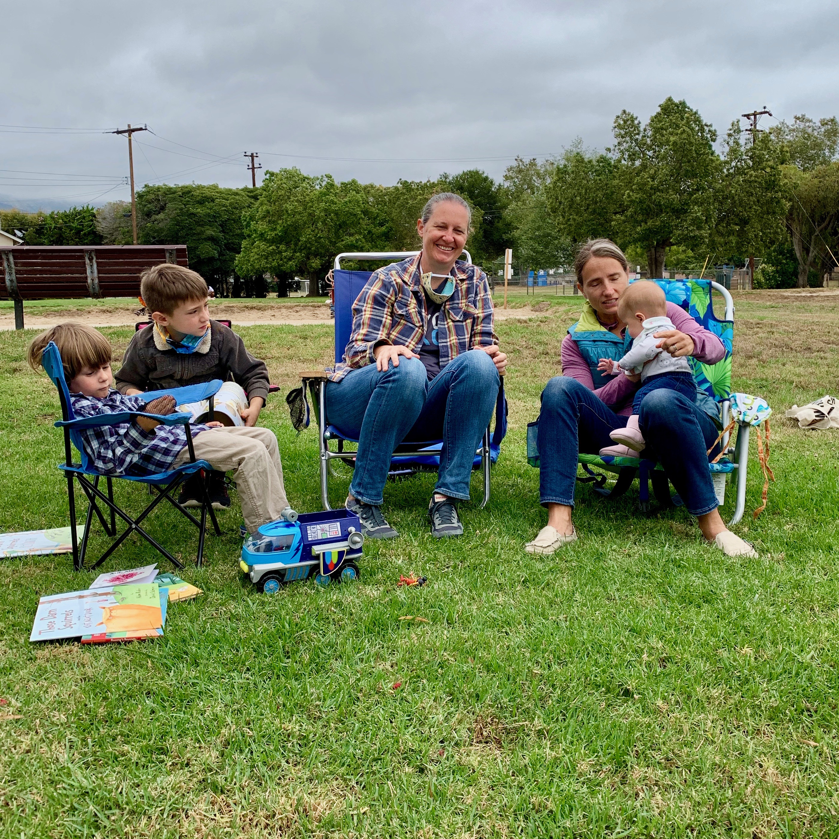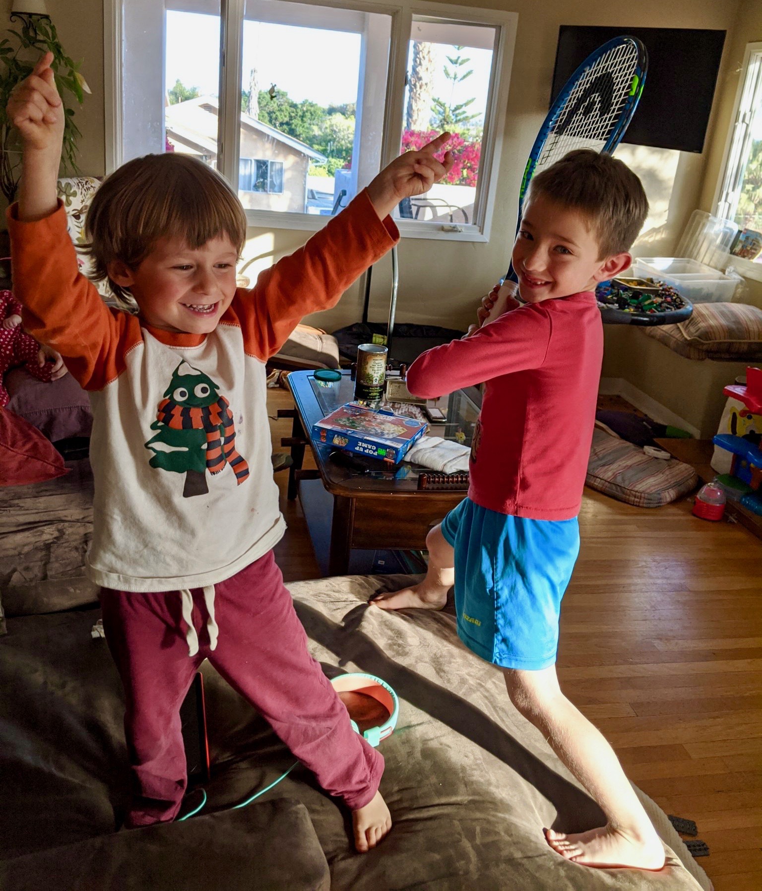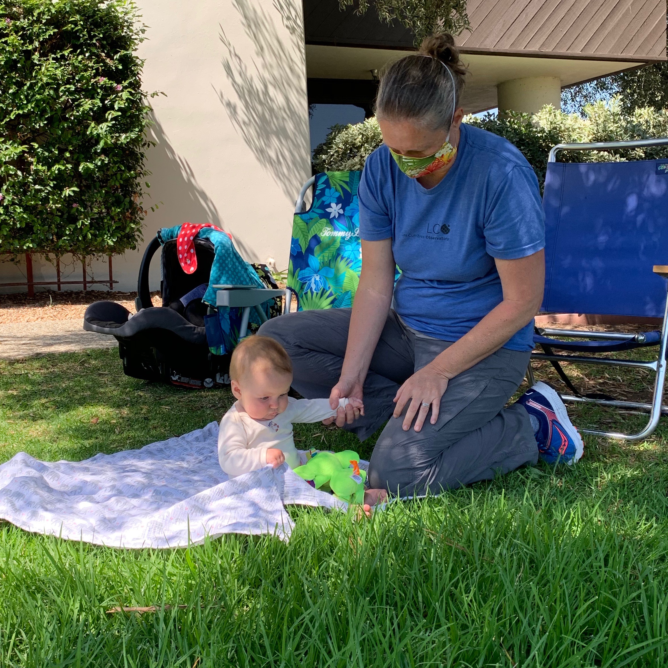 | Today is my birthday. Arranged to meet with the moms and the kids at Annie's place of work, Las Cumbres Observatory, where she has been going in several times a week during quarantine. We met on the lawn in front of her office in Goleta. The boys and I brought our Beyblades, and we all had loads of fun playing and talking. Sunny summer afternoon on the lawn, energetic conversation, Devon being exceedingly cute ... in all, a perfect way to turn 73, never mind the current circumstances. |