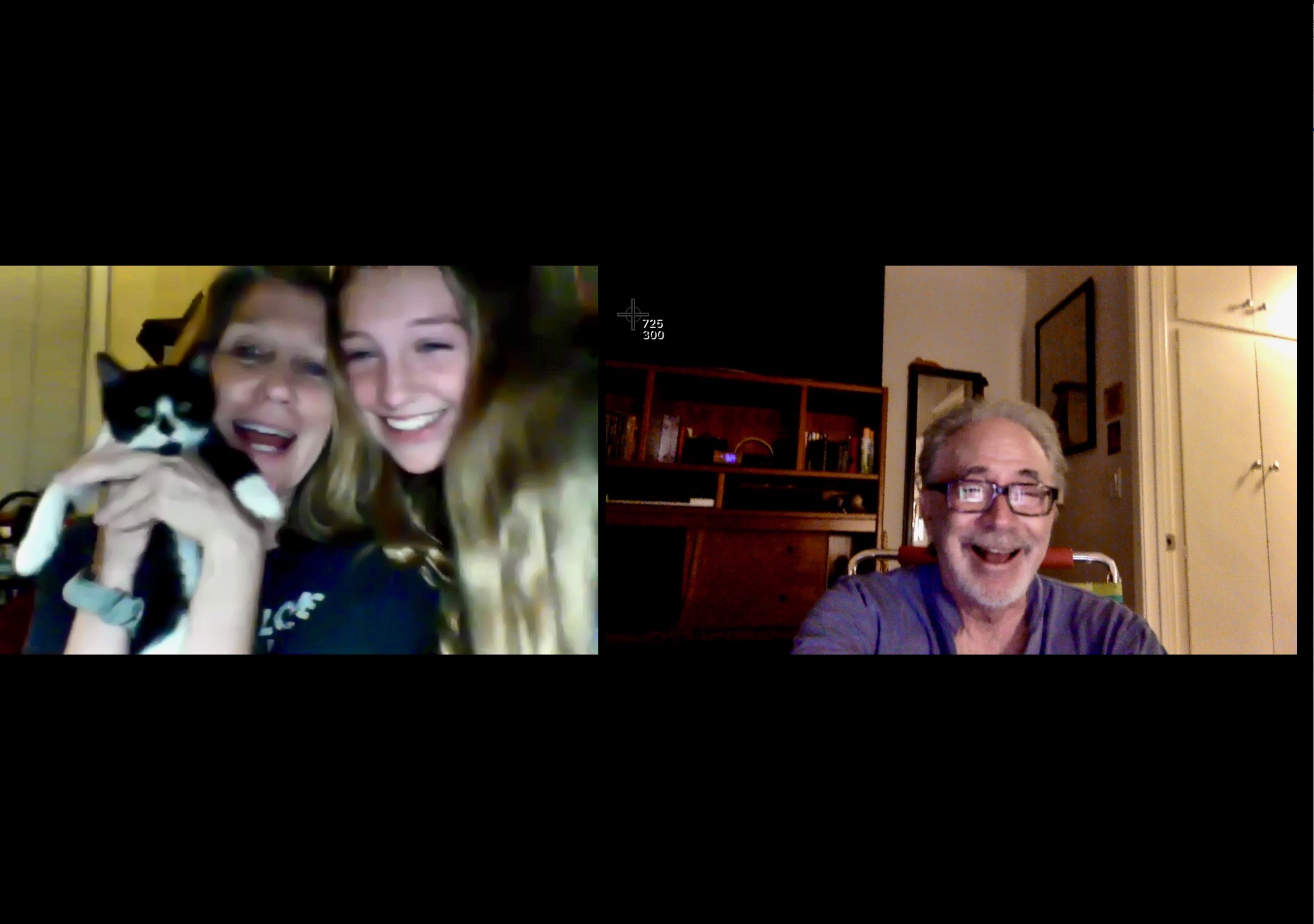 | ... and later that same day, Momo the newly adopted kitten makes a surprise appearance with Lynn and Pearl Stadler on another Zoom call |