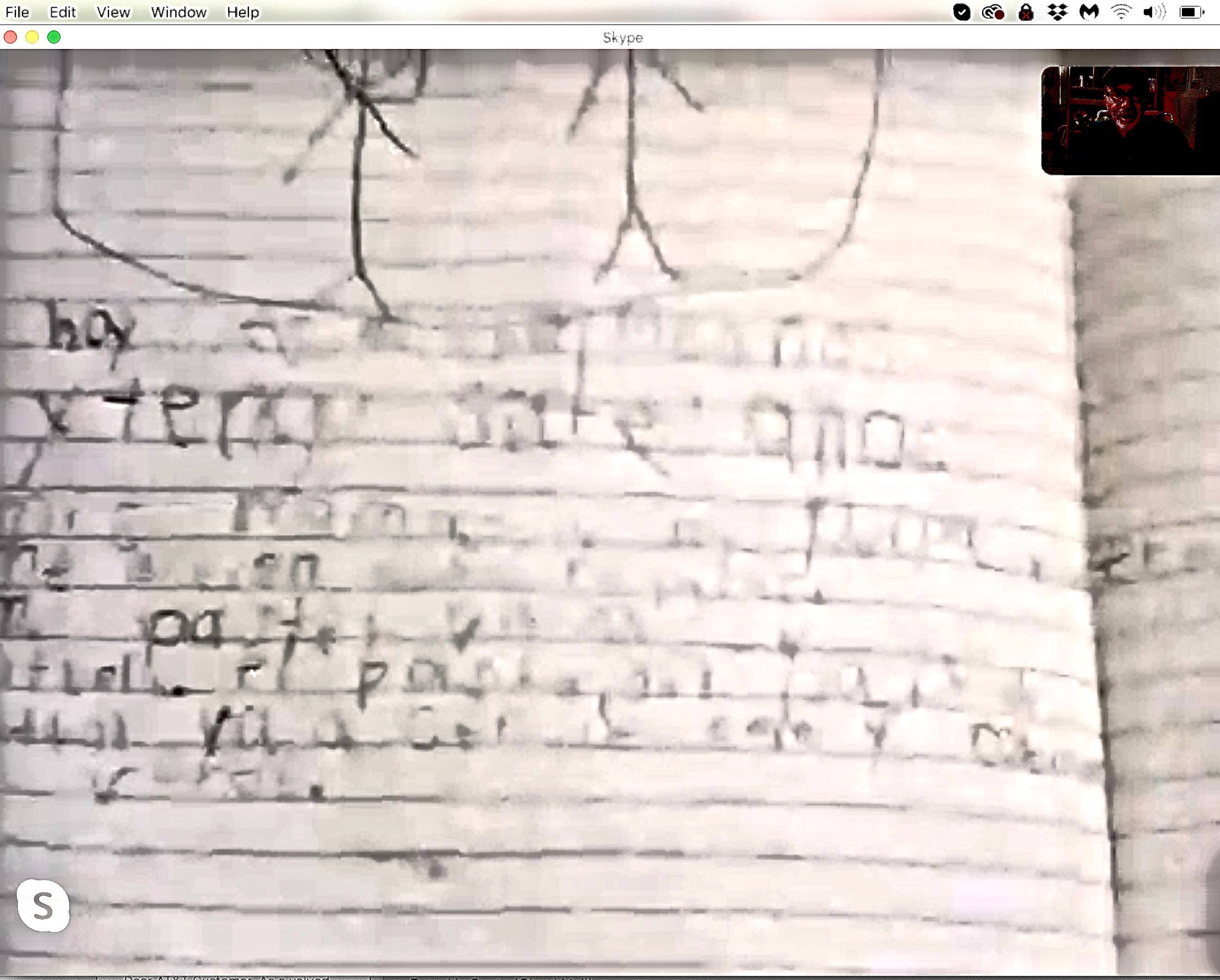 | April 6: Screen shot of Soren's Skype writing assignment today -- looking forward to his birthday! |