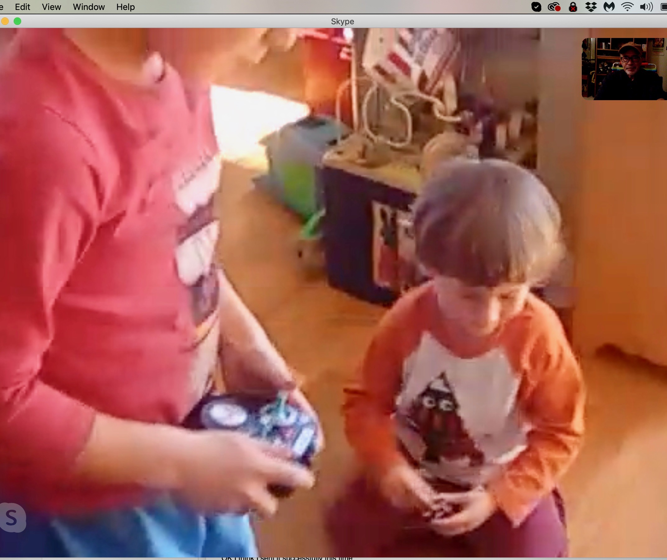| Moms and kids made paper airplanes over the weekend, and they boys enjoyed putting on an Air Show for today's Zoom session. Soren loves to use different backgrounds, frames, hats, animal faces etc. while we Zoom. Evett likes it all except when the mouse nose and ears end up on his face. Then he fries to shake them off and Soren, being the fine and caring brother that he is, turns off the offending feature ... most of the time. This video has no mouse faces -- just the planes, and me forgetting not to talk so that I don't have to be onscreen. Maybe I'll get it one day. |