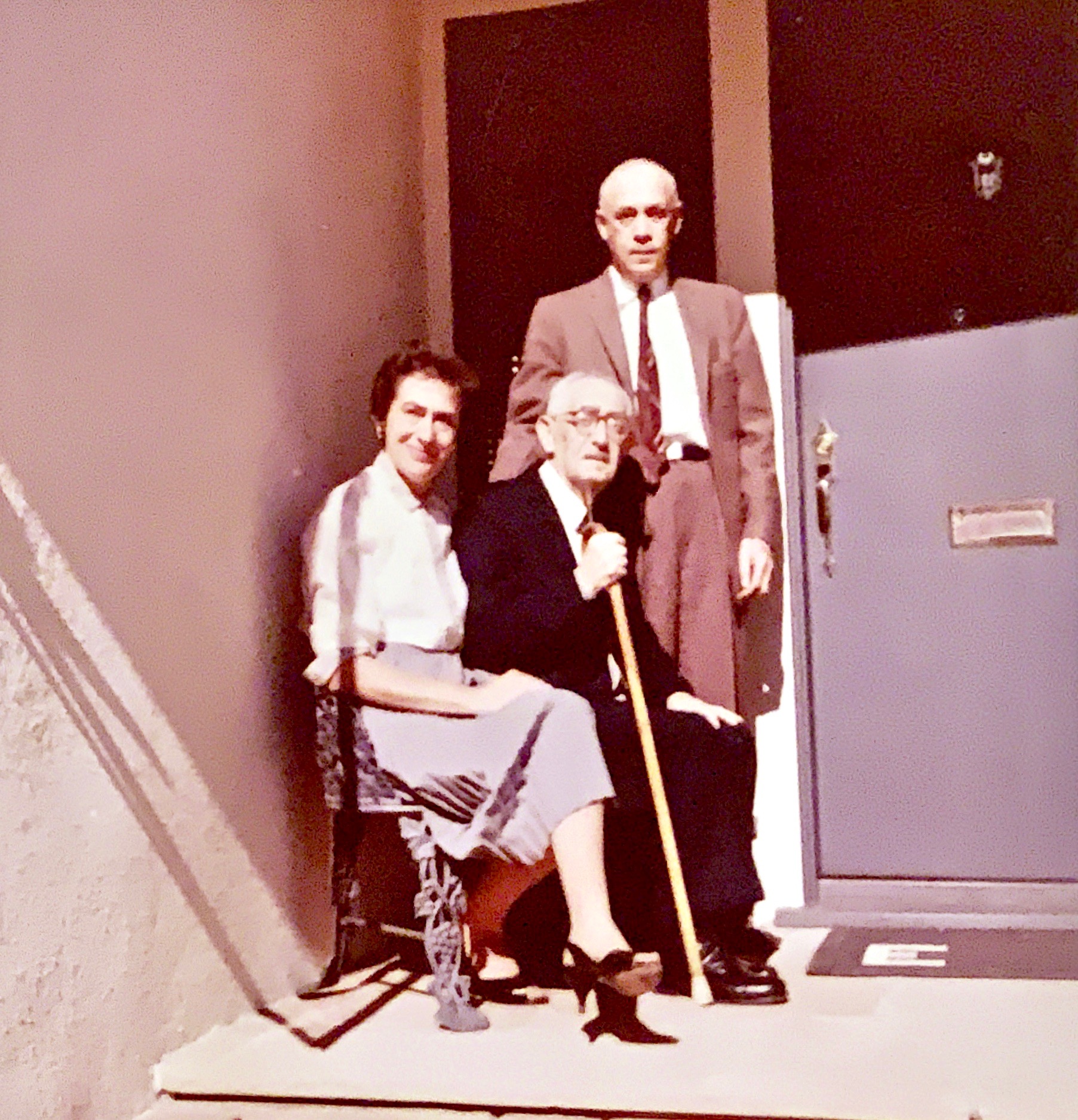 | I can't find any pictures of my Zaydeh (that's what I always called him, Yiddish for grandfather), i.e. my mother's father, from earlier in his life, but here's a 1960 shot of him in Atlanta with my mom and my mom's older brother, my Unce Himy (Chaim Zveetkees/Sweet). I would estimate that Zaydeh – the patriarch of this side of my family – is in his mid-nineties in this picture. Both of my grandfathers lived to be almost 100. |